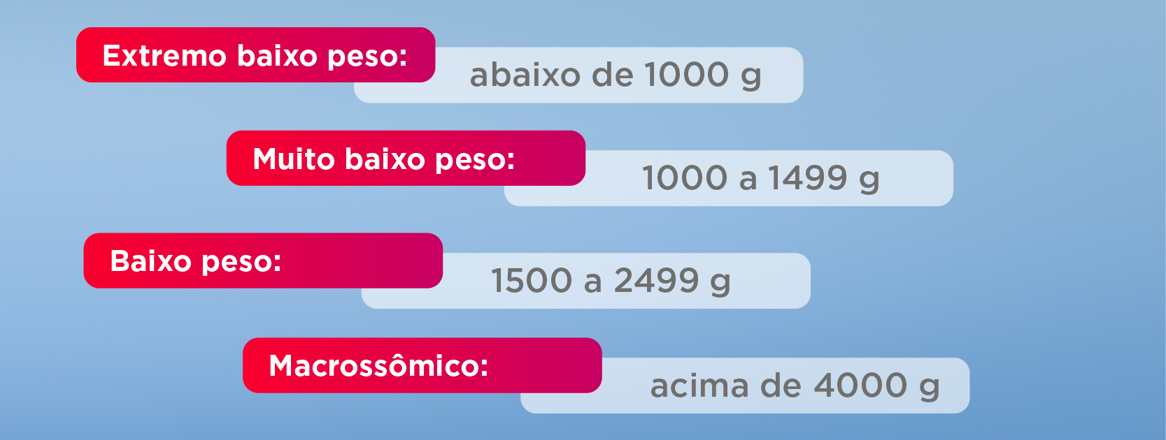 Quando falamos sobre a classificação de acordo com o peso de nascimento, temos: