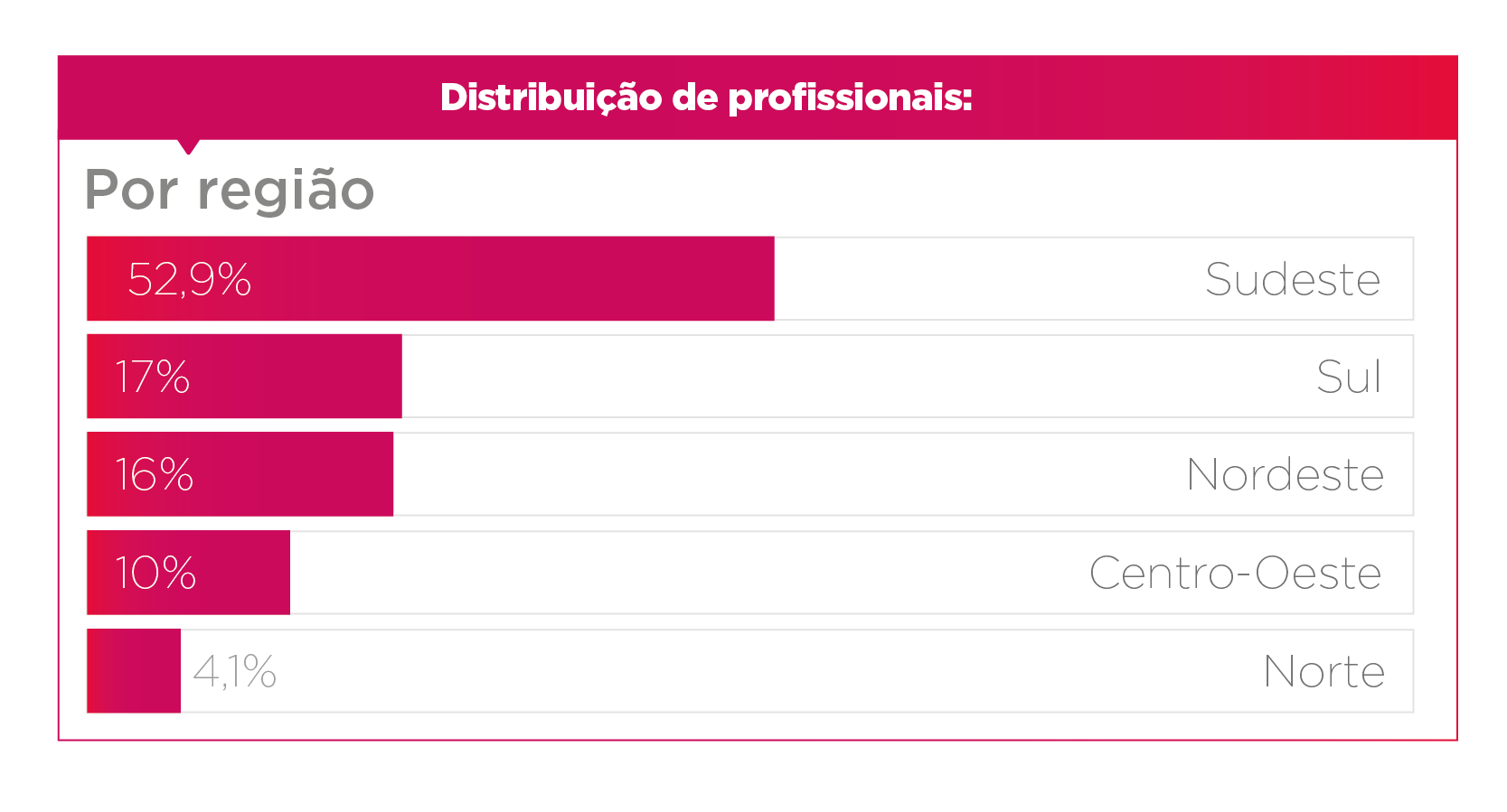 Na distribuição por regiões do Brasil, o Sudeste se destaca em número de profissionais: