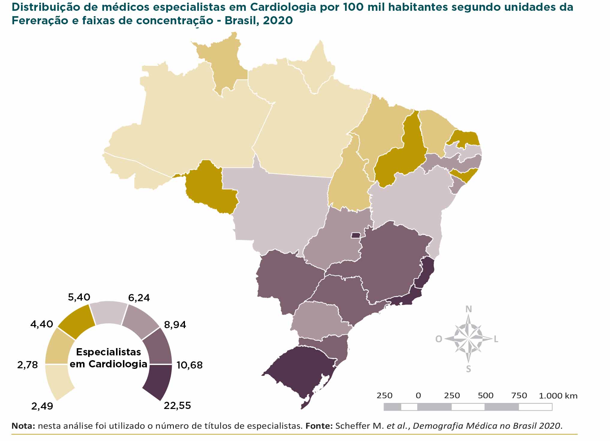 Segundo a Demografia Médica no Brasil (DMB, 2020), a Cardiologia está em sétimo lugar no ranking das especialidades médicas com o maior número de especialistas. São mais de 17.800 profissionais, cerca de 4% do total de títulos.