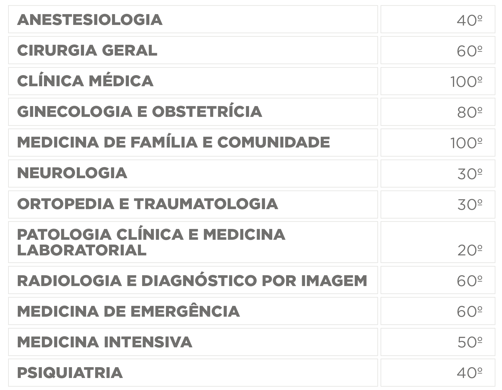 - Maior número de acertos nas questões de Clínica Médica, Cirurgia Geral, Pediatria, Ginecologia e Obstetrícia e Medicina Preventiva e Social.