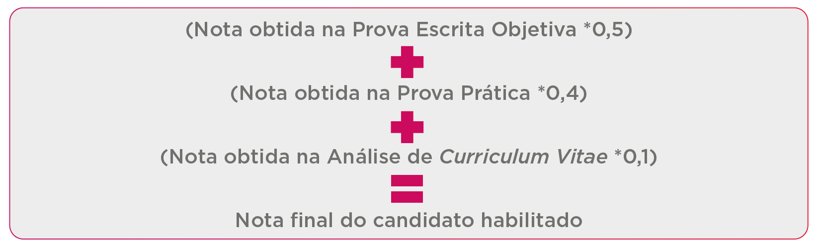 Segundo o edital, a nota final dos candidatos habilitados para os programas de acesso direto foi obtida a partir da equação abaixo: