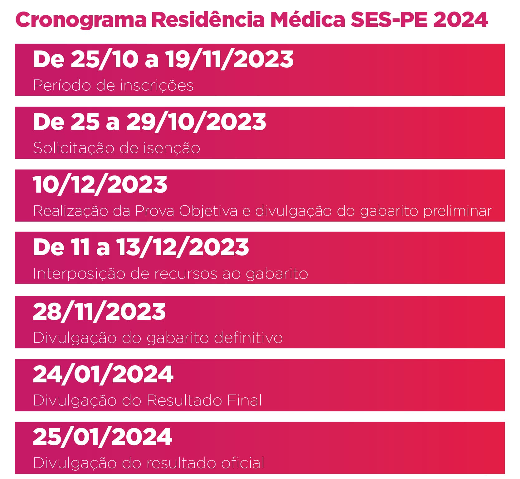 A Secretaria Estadual de Saúde do Estado de Pernambuco (SES-PE) divulgou o resultado final do processo seletivo do programa de Residência Médica 2024.