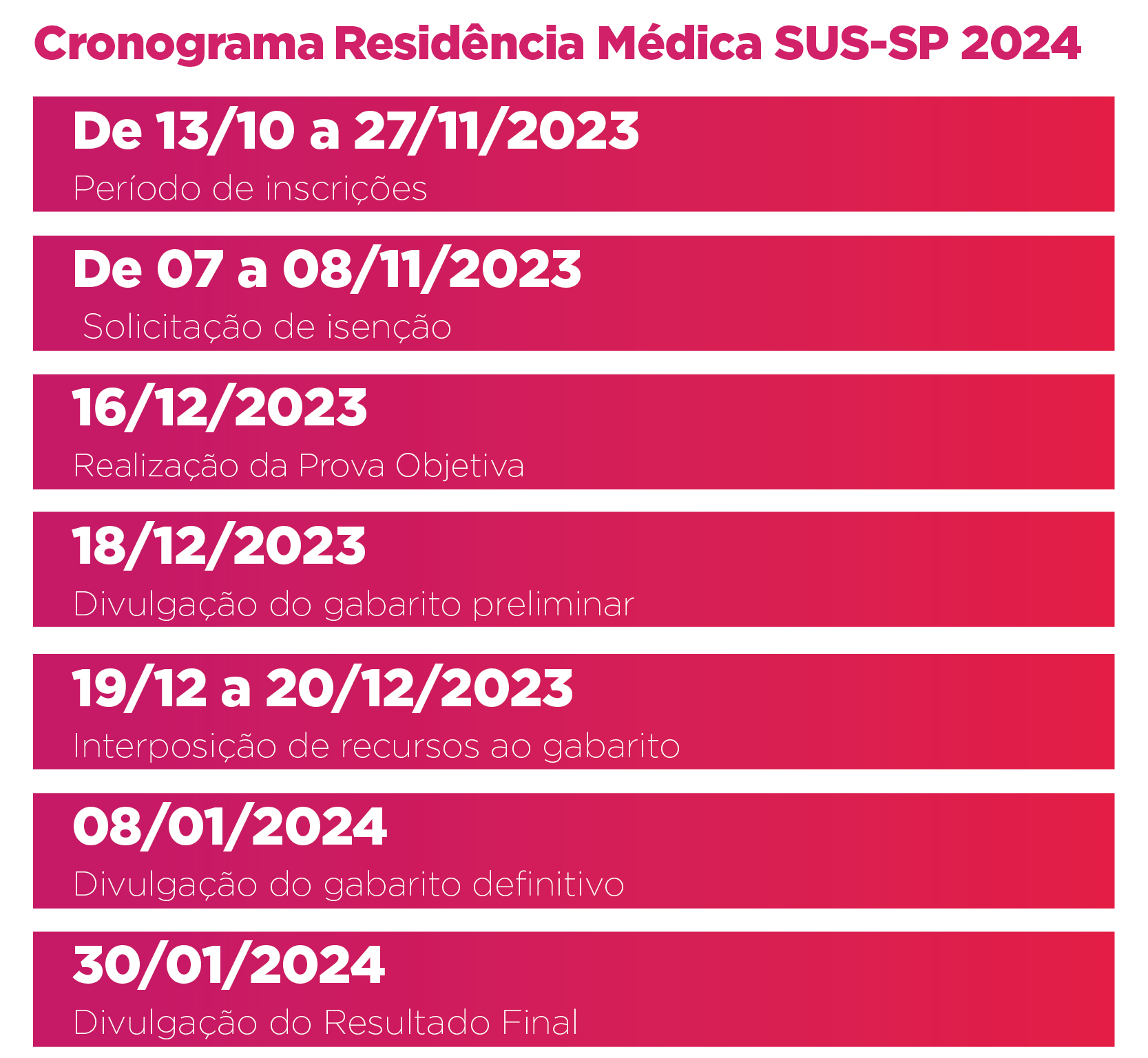 Fim da ansiedade! Saiu o resultado final da prova objetiva do processo seletivo de Residência Médica do SUS-SP 2024. Consulte a lista dos aprovados clicando aqui.