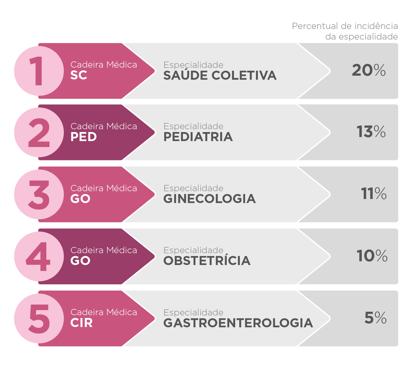 Para fixar alguns pontos importantes, listamos também de acordo com cada especialidade, os temas que merecem a sua atenção, pois além de saber o que cai, é bom saber também como cai na prova.