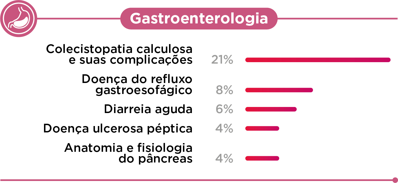 E, para finalizar, o tema Colecistopatia calculosa e suas complicações domina as questões de Gastroenterologia da UFRJ. Lembre-se desses pontos: Cálculos biliares, Colecistolitíase assintomática, Dor biliar e Colangite aguda.
