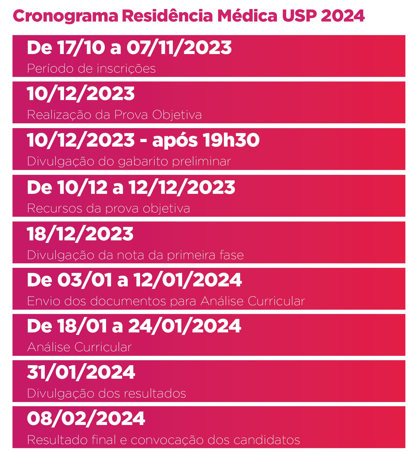 Cronograma do processo seletivo de Residência Médica da USP 2024