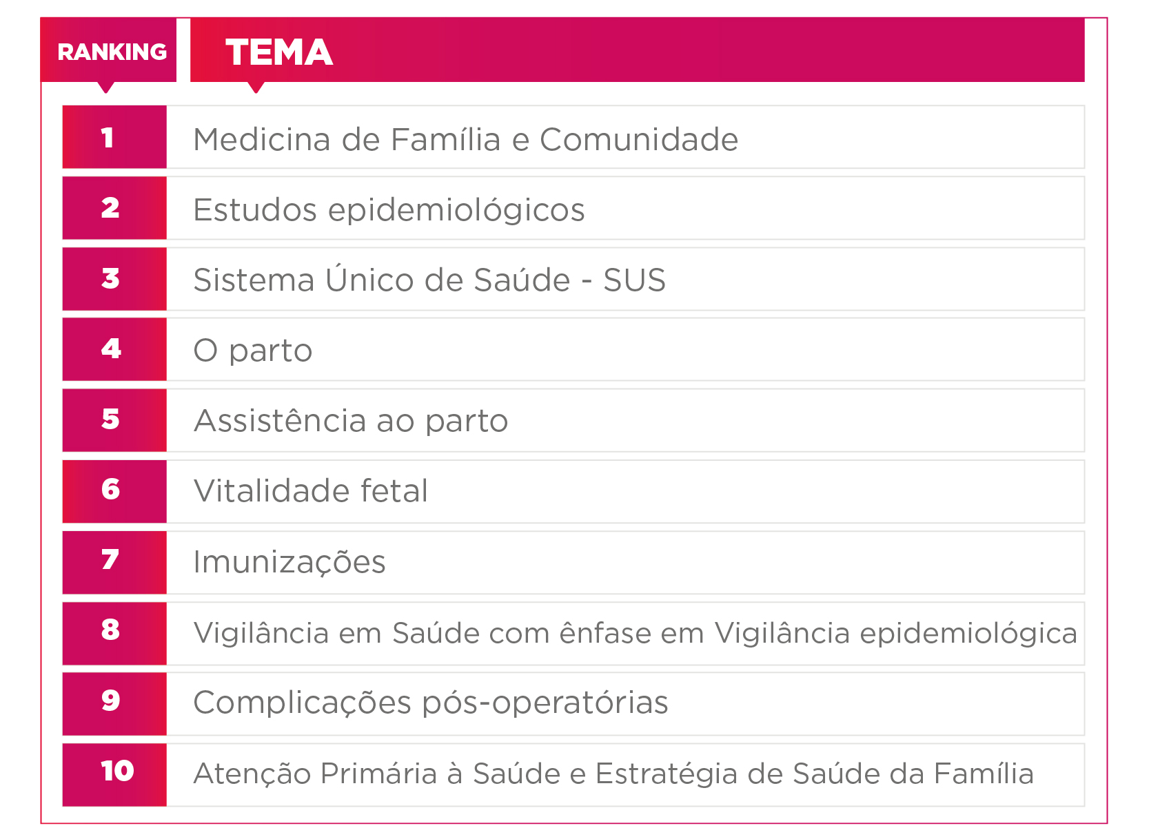 - Para passar por essas etapas e ser aprovado, é preciso muito conhecimento e domínio da prova. Agora que você conhece mais sobre a FMUSP, listamos aqui os 10 temas mais recorrentes dos últimos anos: