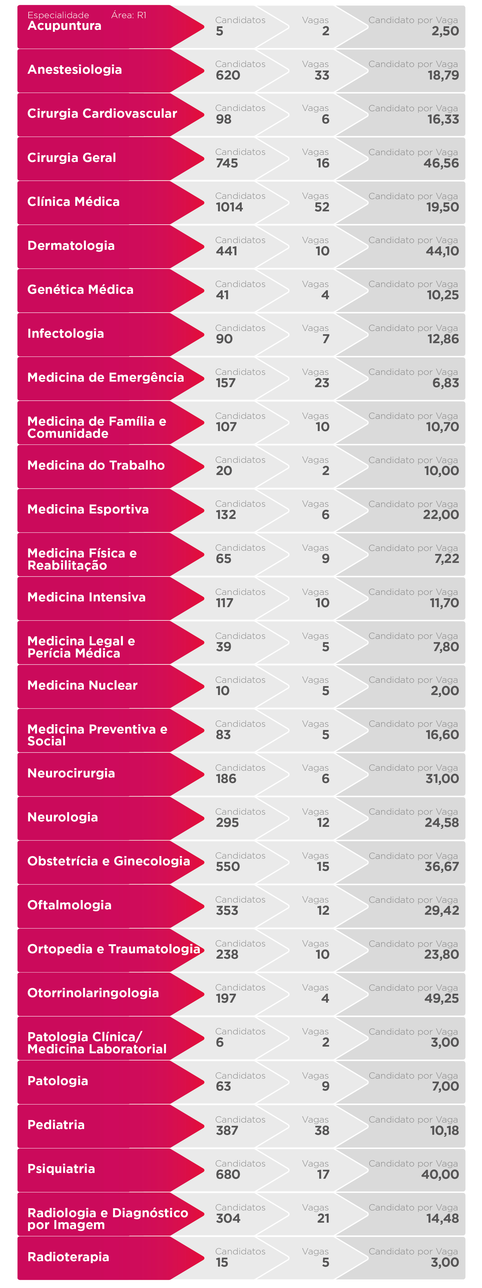 Com base em anos anteriores, criamos uma lista com as top 10 mais concorridas. Veja se a sua especialidade faz parte desse ranking: