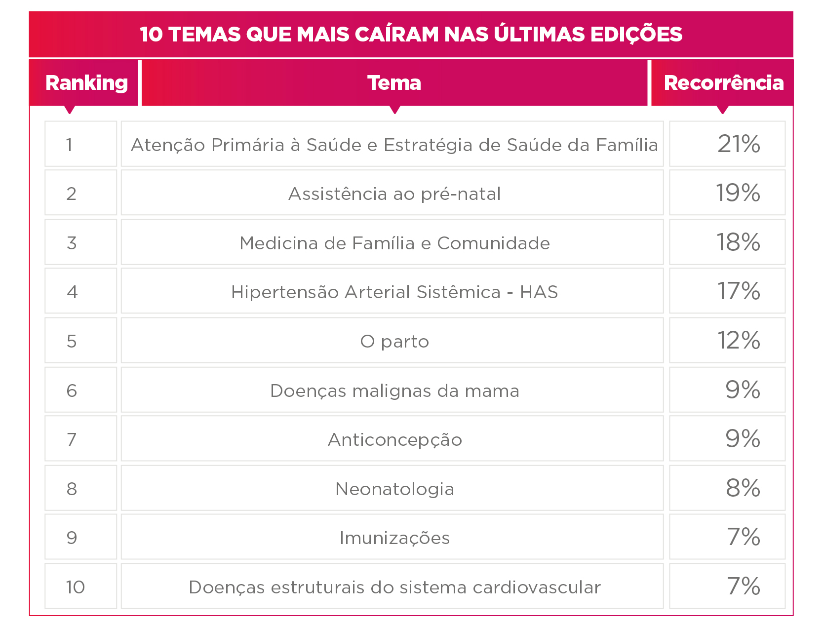 Estude com antecedência e dedique tempo diariamente para revisar e aprofundar seus conhecimentos nas áreas relevantes do programa. Separamos aqui 10 temas que mais caíram nas últimas edições: