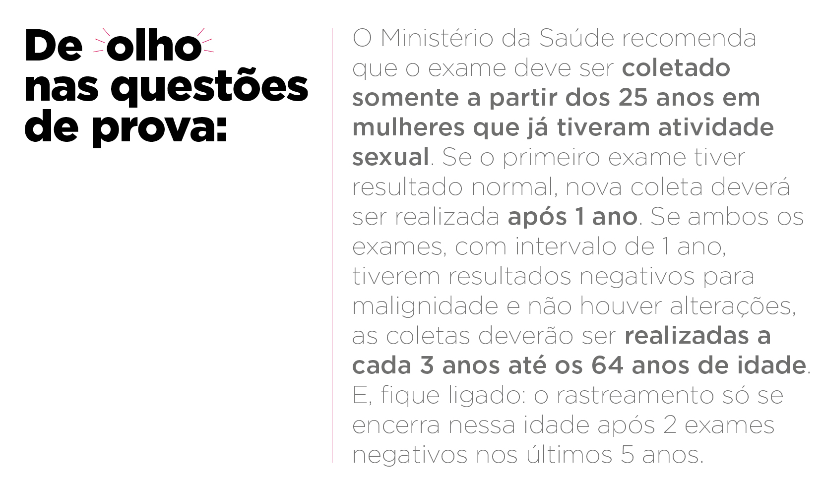 O Papilomavírus Humano (HPV) e a Neoplasia Intraepitelial Cervical (NIC) são assuntos que sempre caem nas provas. As NICs são lesões precursoras do câncer de colo uterino, terceiro tumor maligno mais frequente na população feminina (ficando atrás do câncer de mama e do colorretal), e é a quarta causa de morte por câncer em mulheres no Brasil. E, olha só esse dado: o HPV está presente em 94% dos casos de câncer de colo do útero. A diminuição da mortalidade pelo tumor só é possível com o diagnóstico precoce das NIC’s. Então, você deve ficar por dentro deste assunto para gabaritar as questões.
