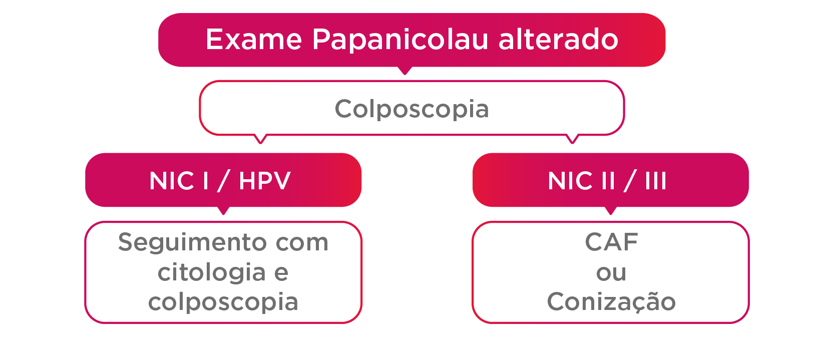 E, cuidado para não se confundir: o exame citológico terá resultados que vão direcionar para necessidade ou não da colposcopia — dessa forma, é possível classificar as lesões em NIC I, II ou III.