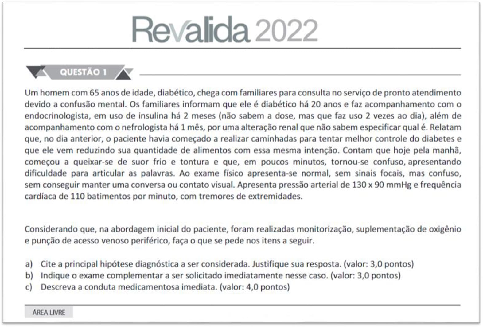 Já a prova prática faz parte da última etapa do processo do Revalida. Somente os aprovados na primeira etapa são os que podem seguir para o teste de habilidades clínicas. Cinco estações das principais áreas médicas são usadas para avaliar o desempenho do candidato, que precisa acertar o maior número de procedimentos corretos em um atendimento. E esta avaliação é feita por meio de um checklist formulado pela banca avaliadora do exame.