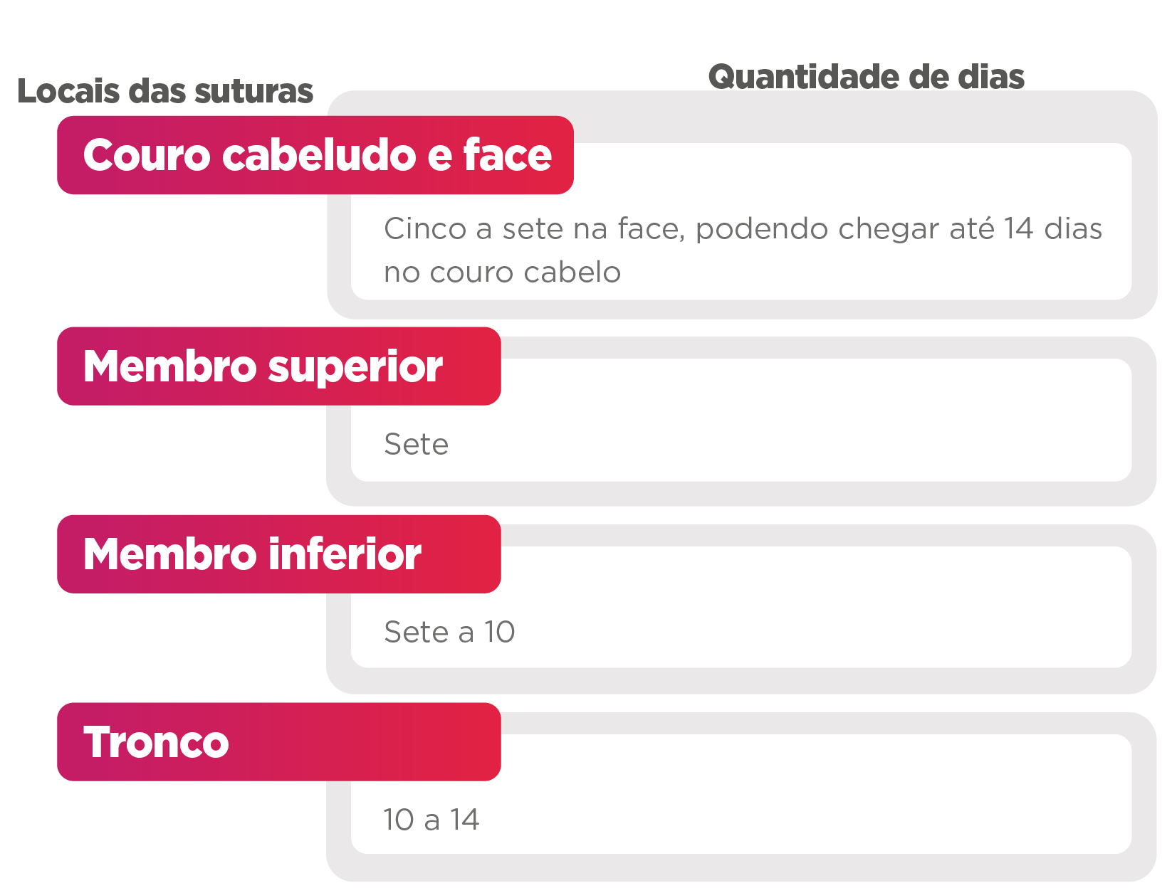 Outro ponto que é muito cobrado em provas é o tempo de remoção de suturas não absorvíveis: