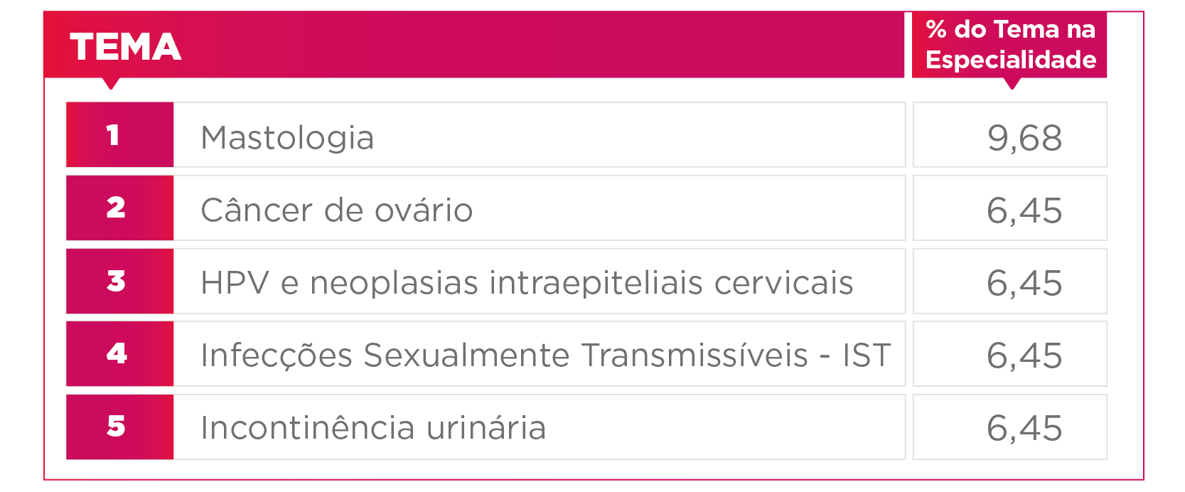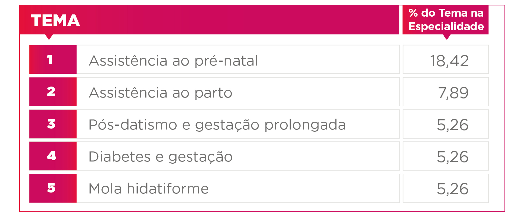 Entretanto, tão importante quanto saber quais são as especialidades que mais caem no ENARE, é saber o ranking de temas de acordo com essas especialidades. É possível identificar alguns assuntos “queridinhos” da banca, ou seja, aqueles que se repetem ao longo das edições. Então, separe seu marca-texto colorido, porque falaremos o TOP 5 temas que mais caem na prova.