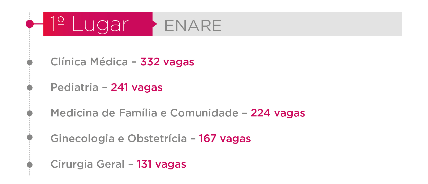 Em primeiro lugar o Enare, com 1745 vagas de Residência Médica para ingresso em 2023. As especialidades com maior número de vagas disponibilizadas foram: