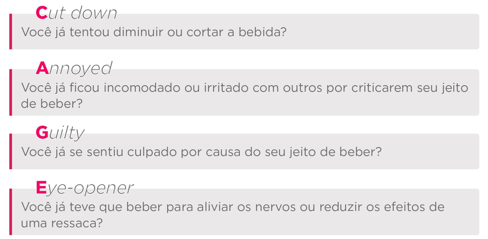 Duas ou mais respostas afirmativas sugerem problemas relacionados ao uso de álcool, com sensibilidade superior a 80%.