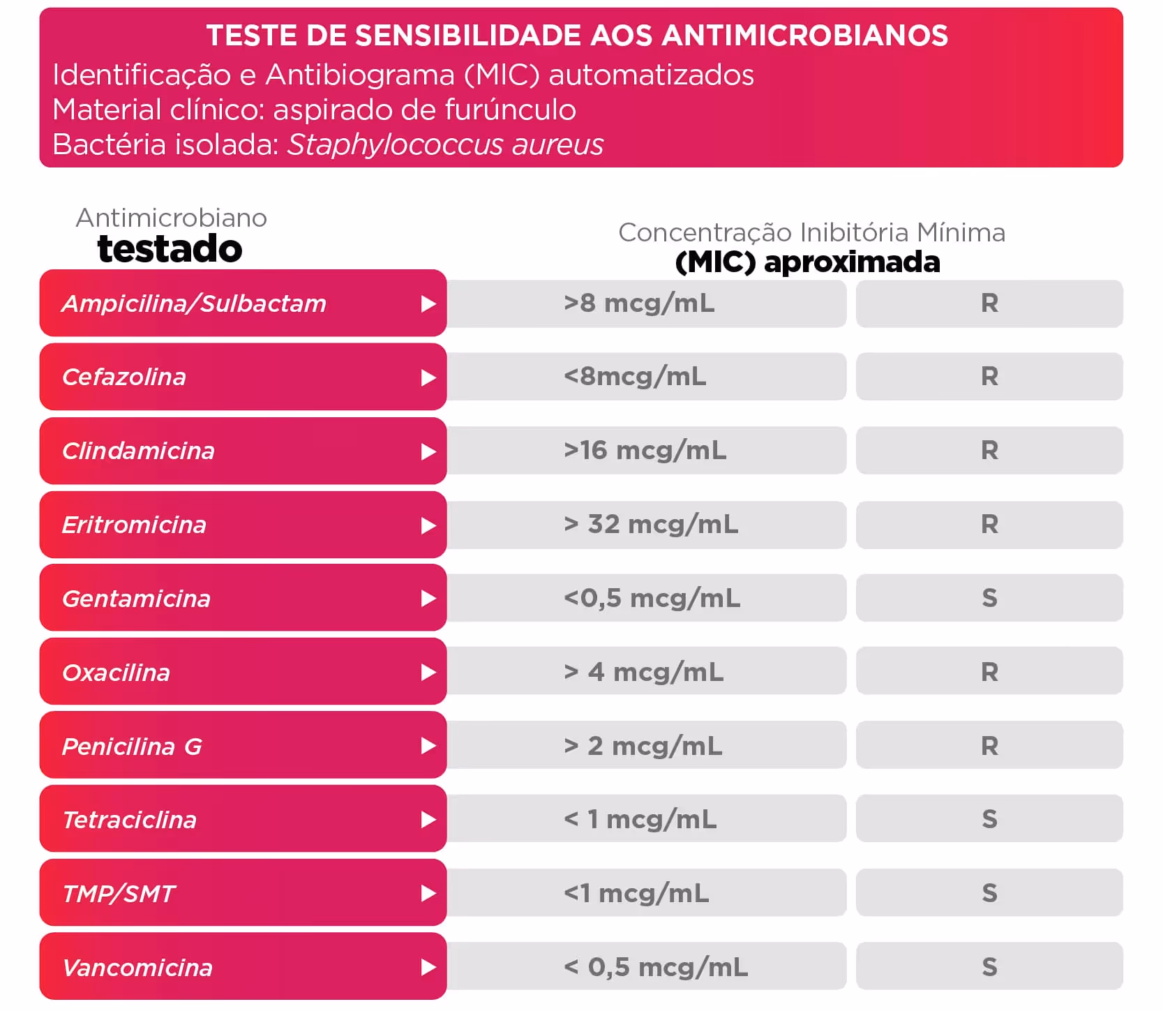 Quando você olha um antibiograma de alguma cultura, o MIC é aquele número que fica associado ao antibiótico testado. A tendência de quem não conhece sua função é comparar os números entre diferentes antibióticos e usar aquele de menor valor. Não faça isso. Nunca comparamos MIC de antimicrobianos diferentes. Cada antimicrobiano tem valores específicos de MIC pré-determinados, e não se pode comparar números entre antibióticos diferentes. É o MIC que vai definir se uma bactéria é susceptível, intermediária ou resistente àquele antibiótico.
