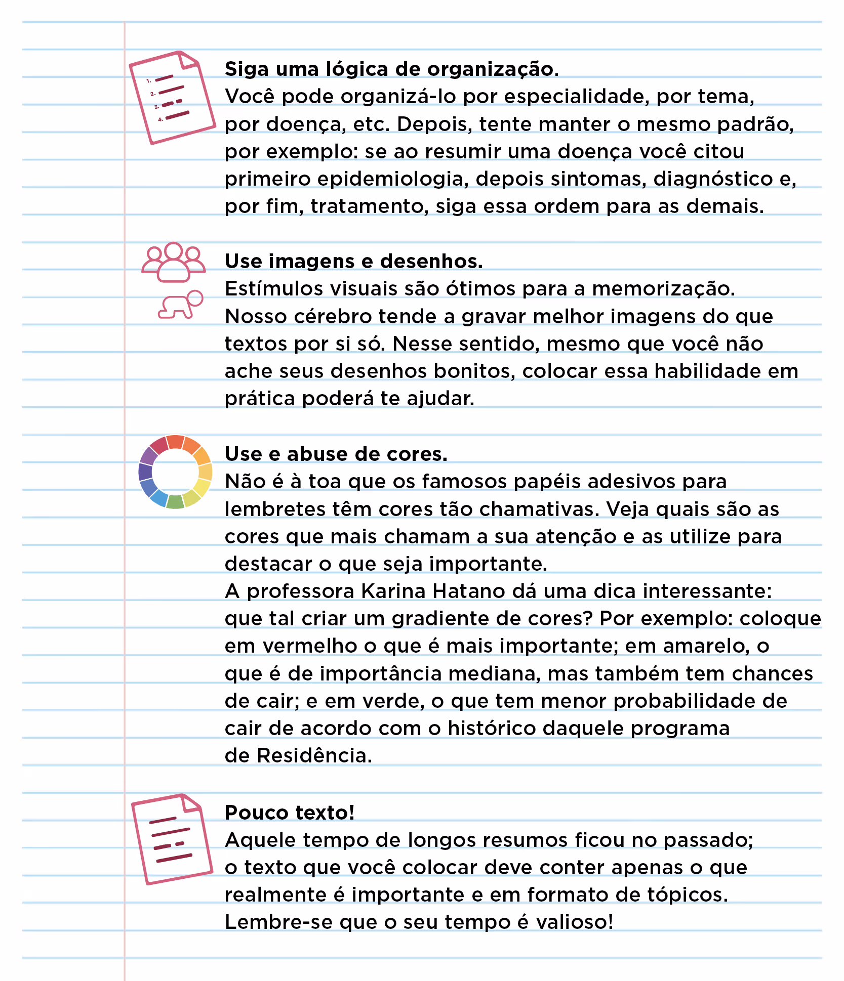 O resumo é um amigo de longa data dos estudantes, mas, cuidado: o resumo para a prova de Residência Médica não deve seguir a mesma linha dos resumos que você fez ao longo da graduação — cheios de texto e de informação.