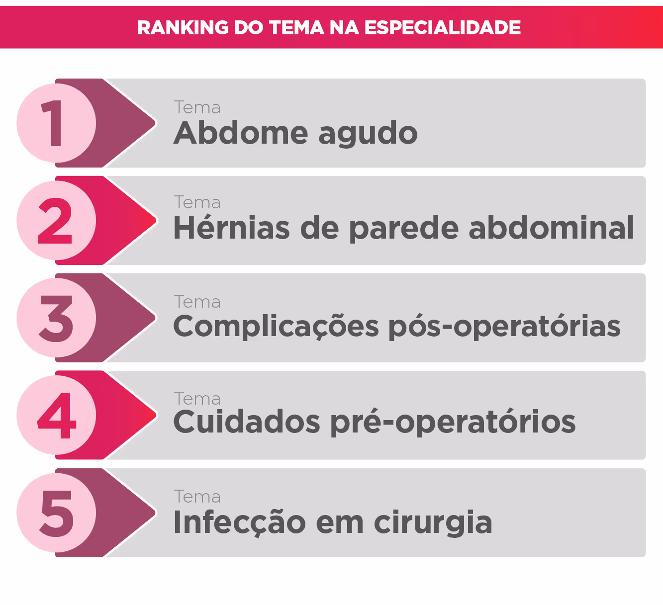 Top 5 assuntos de Cirurgia – Banco de dados Medcel de 2017 a 2022