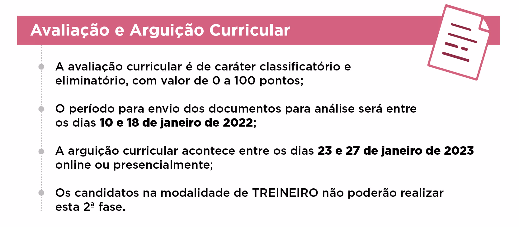 A primeira já passou, agora falta a segunda etapa que é de Avaliação e Arguição Curricular: