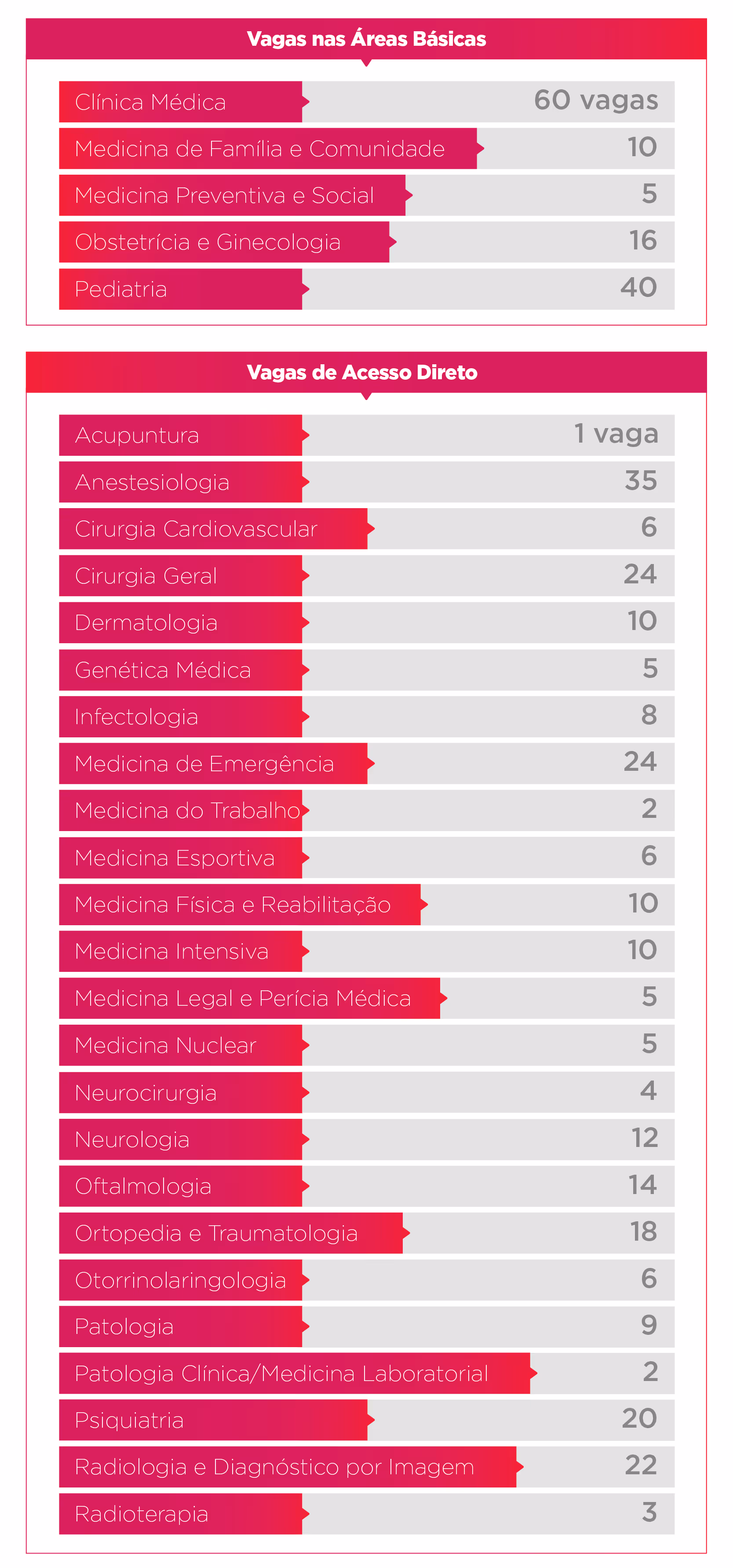 As vagas de Residência Médica são distribuídas da seguinte forma: 60% para alunos da FMUSP e 40% para alunos de outras instituições do país.