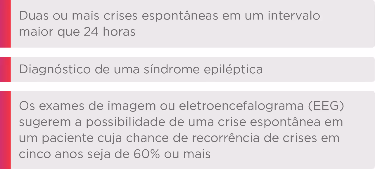 Há duas definições de epilepsia, uma conceitual/científica e outra operacional/prática. Esta última é definida como uma das seguintes condições: