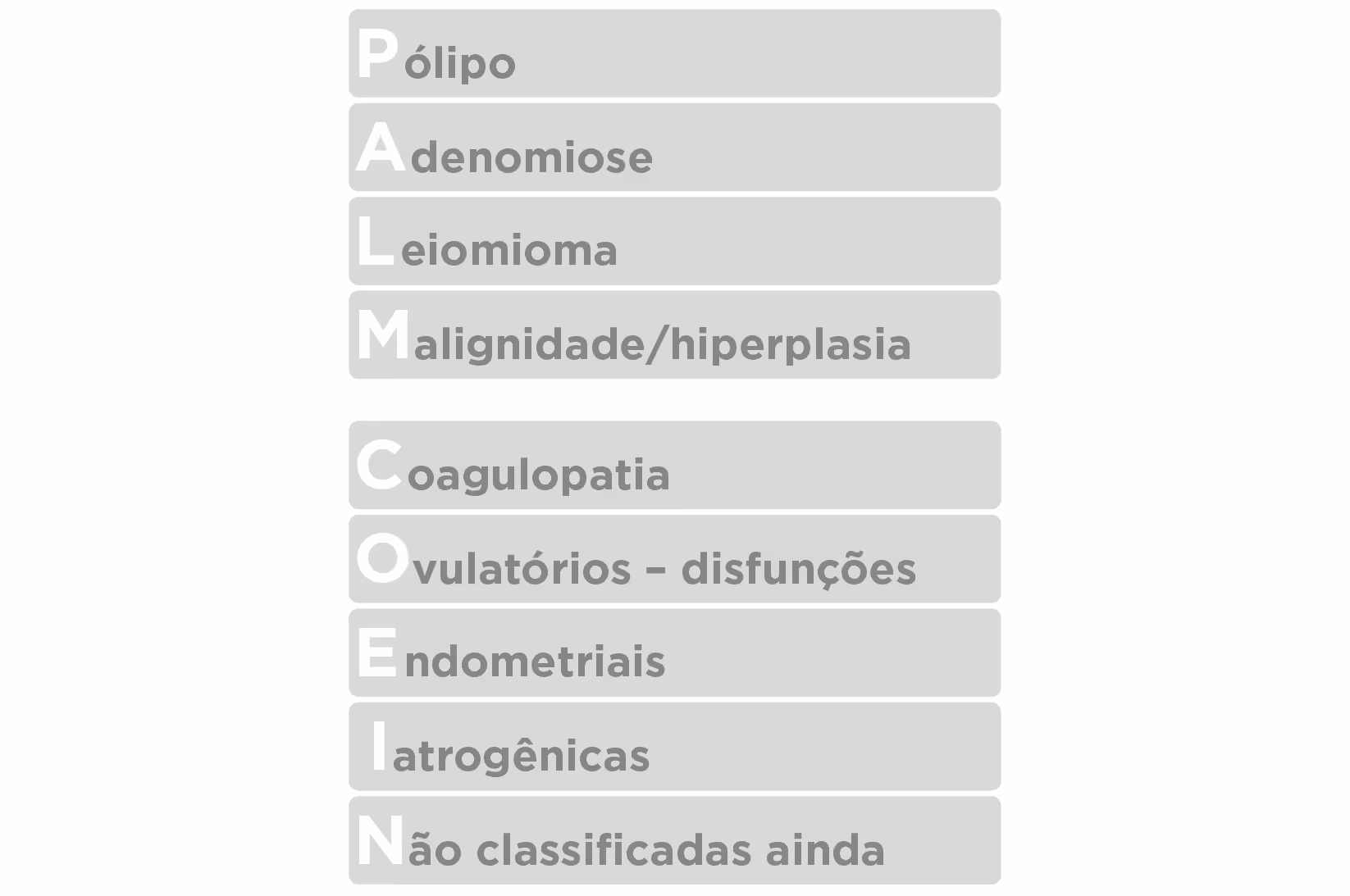 Lembrando que temos como diagnóstico diferencial todas as doenças do sangramento uterino anormal, o mnemônico de PALM-COEIN.