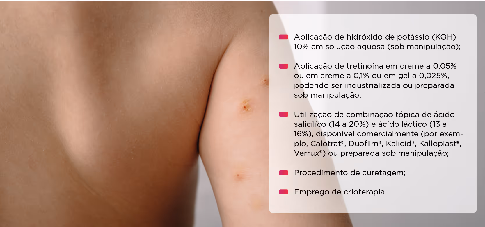 Podem aparecer em qualquer localização, poupando as regiões palmoplantares. Em imunocompetentes, raramente ultrapassam 0,5 cm. As lesões podem evoluir com sinais inflamatórios, indícios de que o organismo elaborou uma resposta imunológica, e, nesses casos, podem ser pruriginosas.