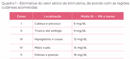MEDCEL. Estimativa do valor sérico de bilirrubina, de acordo com as regiões cutâneas acometidas. São Paulo: Medcel, [202-]. 1 quadro. Acervo Medcel.
