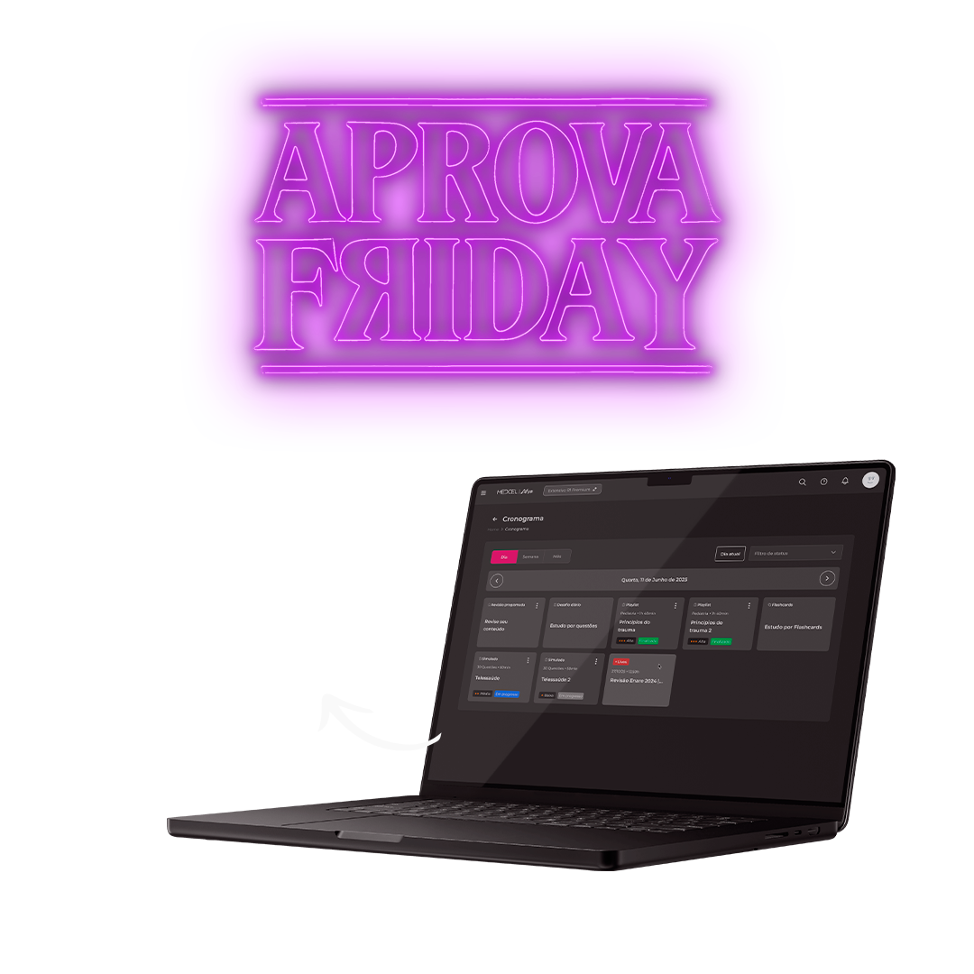 Aqui você coloca sua preparação à prova. A cada ciclo, realiza simulados de até 100 questões dos temas mais incidentes dos exames. Esse é o momento de sentir a pressão e avaliar o quanto seu treino está funcionando.
